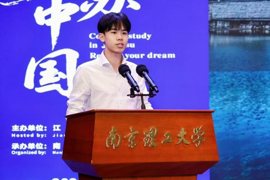 我校留学生代表在江苏高校来华留学生“开学第一课”发言