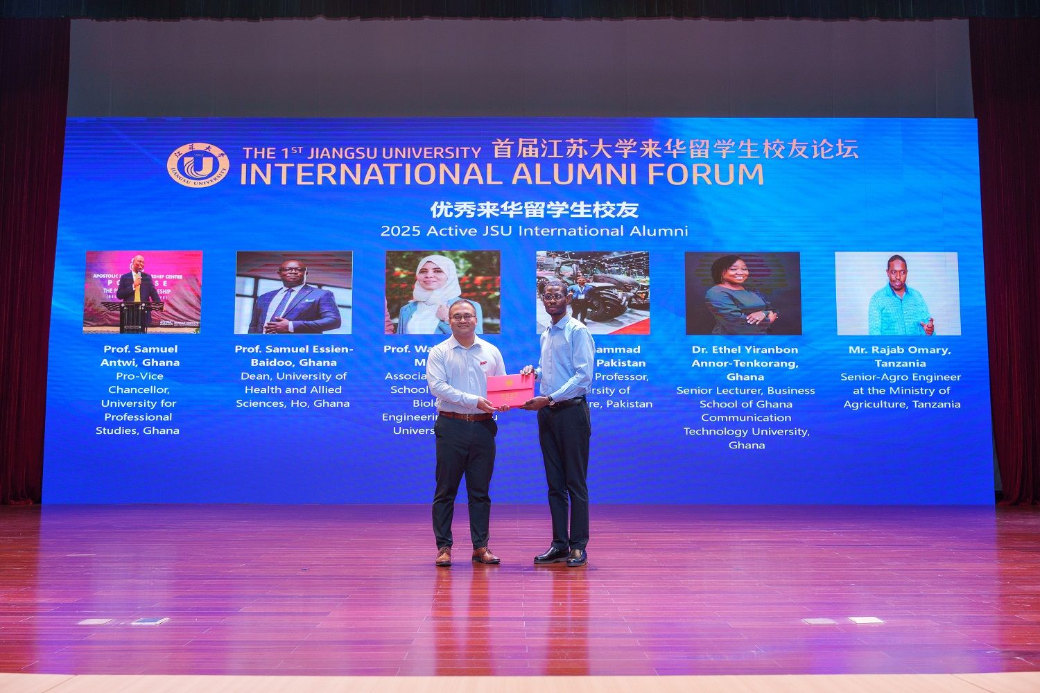 来自加纳、喀麦隆、巴基斯坦的四位优秀来华留学生校友代表埃里克·亚·纳米塞、约瑟夫·乔纳森·马古阿、谢赫·法尔汗·阿什拉夫和塞洛姆·姚-赛·所罗门·阿达德结合自身在我校学习和在其他国内高校工作的经历,分享了在学术研究、职业发展和跨文化交流方面的经验与体会。他们表示,江苏大学的学习环境和丰富实践机会为个人成长和职业发展提供了坚实基础,也激励他们积极参与校友网络建设,推动中外学术与职业交流,为全球校友事业发展贡献力量。