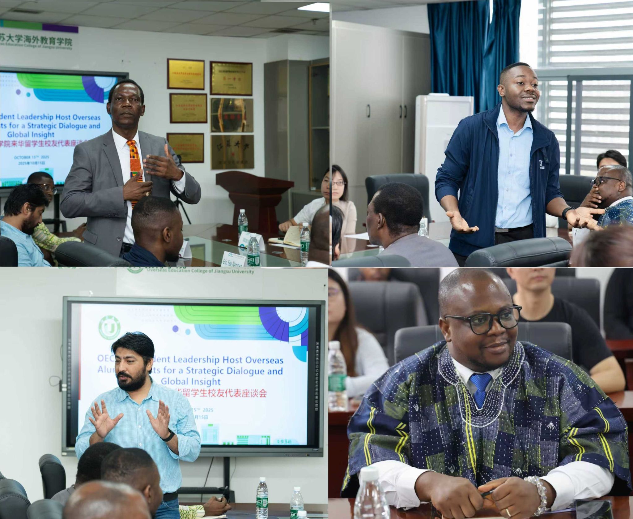 四位校友中,三位均在江苏大学获得博士学位,一位本科毕业后在清华大学完成了硕博士阶段的学习,目前四人在国内知名高校从事教学与科研工作,在各自领域取得了积极成果。座谈会上,他们首先进行了自我介绍,分享了在江苏大学学习生活的经历与感悟,回顾了在华求学的美好时光,表达了对母校悉心培养的感激之情。