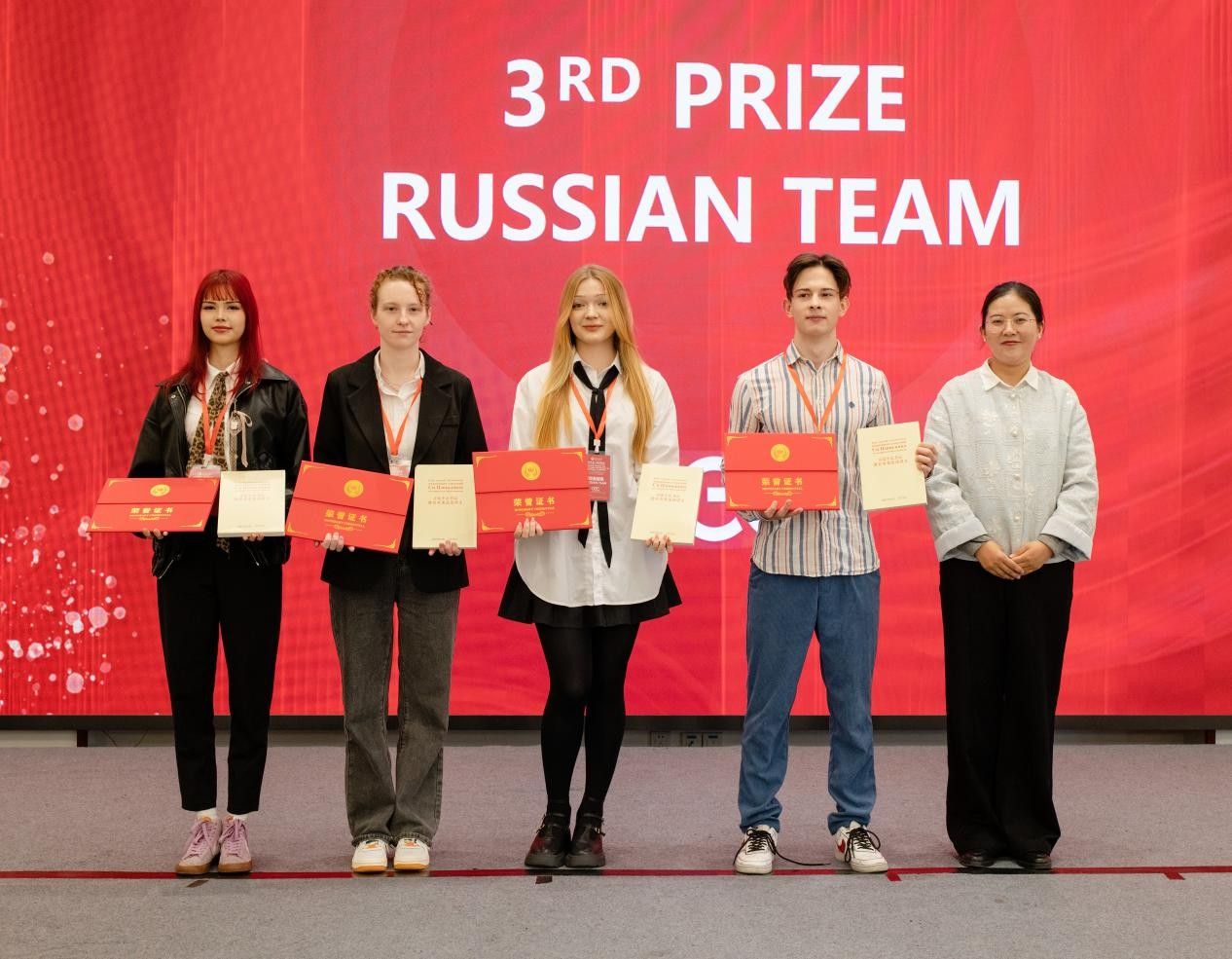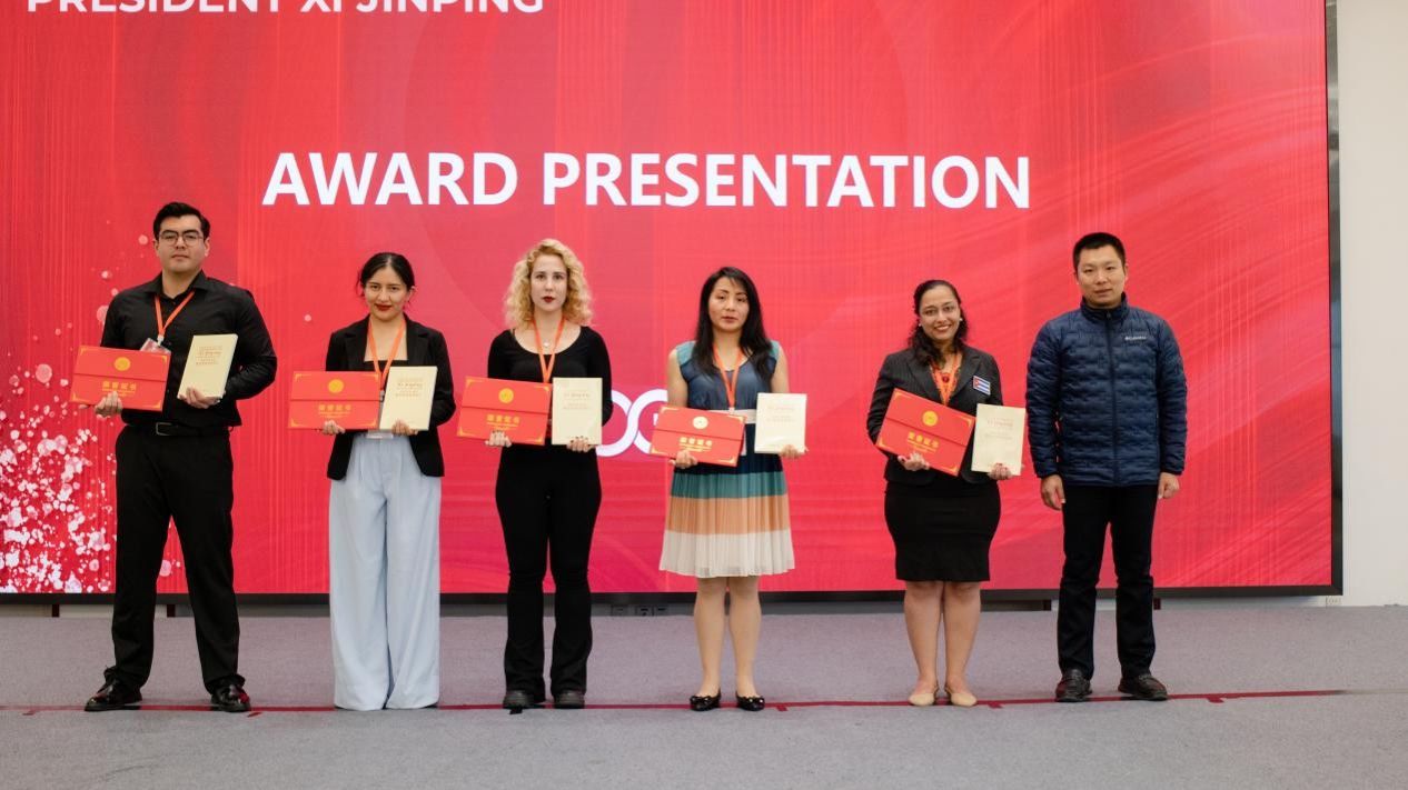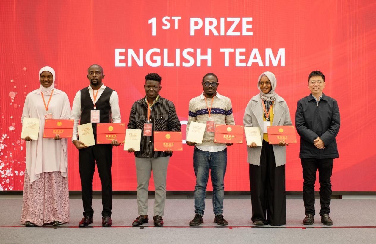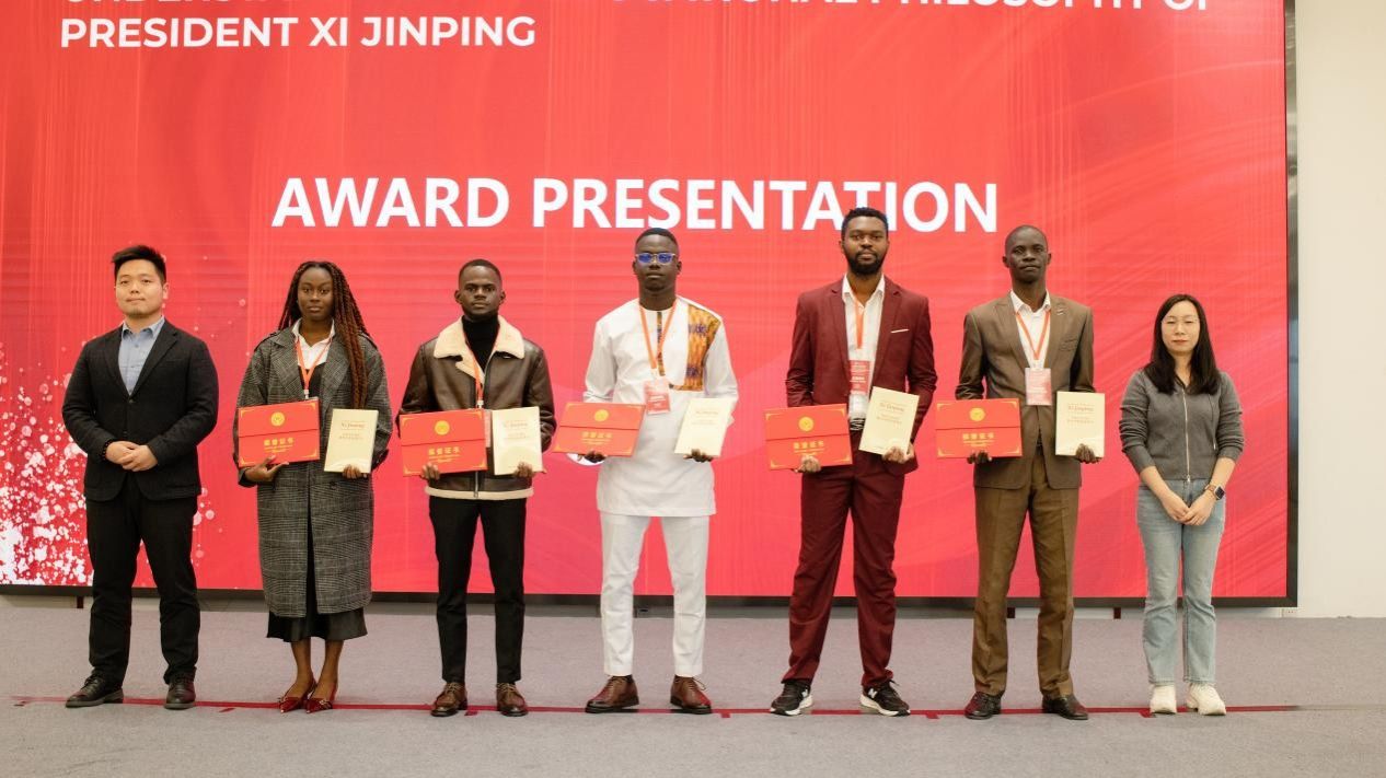 活动最终评选出一、二、三等奖各1项、参与奖2项,与会嘉宾为获奖团队颁发荣誉证书及《习近平总书记教育重要论述讲义》多语种版本。(海外教育学院)