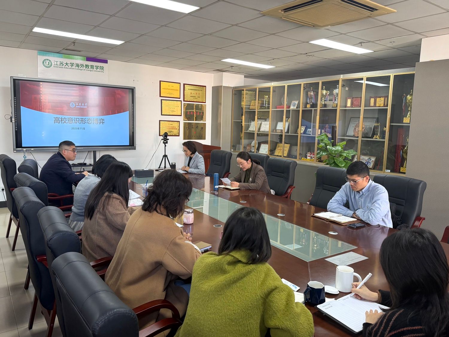 11月25日,海外教育学院邀请校党委宣传部副部长、新闻中心副主任吴奕作意识形态专题讲座,学院全体教职工参加学习,讲座由直属党支部书记王丽敏主持。