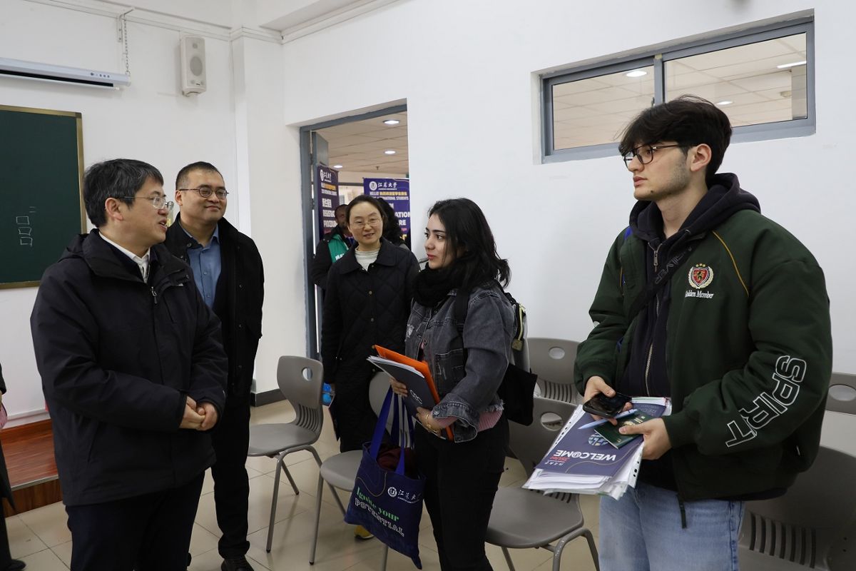 邹小波关切地询问留学生新生初到中国的感受与适应情况,表示江苏大学有着良好的国际化育人环境,始终致力于为来华留学生提供优质的教育资源与良好的学习生活环境,勉励留学生新生尽快融入校园,珍惜在华求学的宝贵时光,在深入了解中国、感知中国的同时,刻苦钻研专业知识,努力成长为推动文明互鉴、促进中外友好的青年使者。