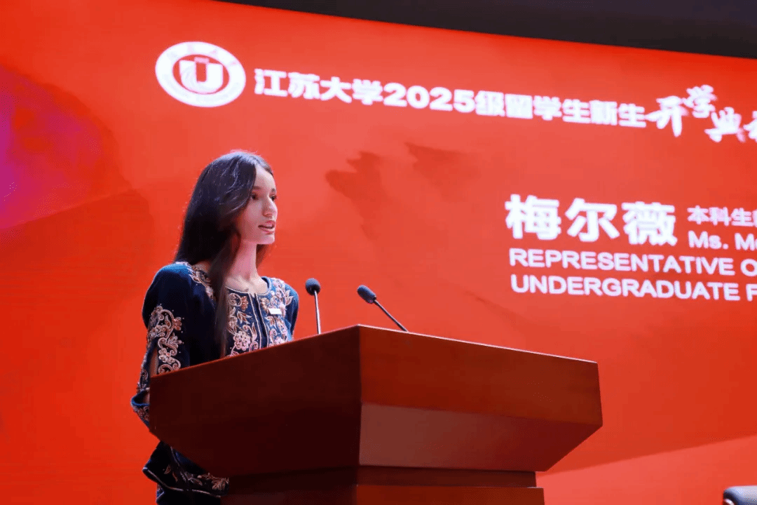 Wu Peng, Dean of the Overseas Education College, provided an introduction regarding the faculty strength, curriculum system, and support services. He stated that the college would make every effort to provide academic support and daily services for international students, helping them truly integrate into the campus and gain a deeper understanding of China. Li Hongyan, a representative of the faculty and one of the Top Ten Most Popular Teachers at Jiangsu University in 2025, delivered a speech in which she encouraged the new students with the message "Language knows no boundaries; a sense of belonging makes a home." She urged the new students to actively learn Chinese, respect their teachers, and open the door to understanding China and integrating into the campus community.