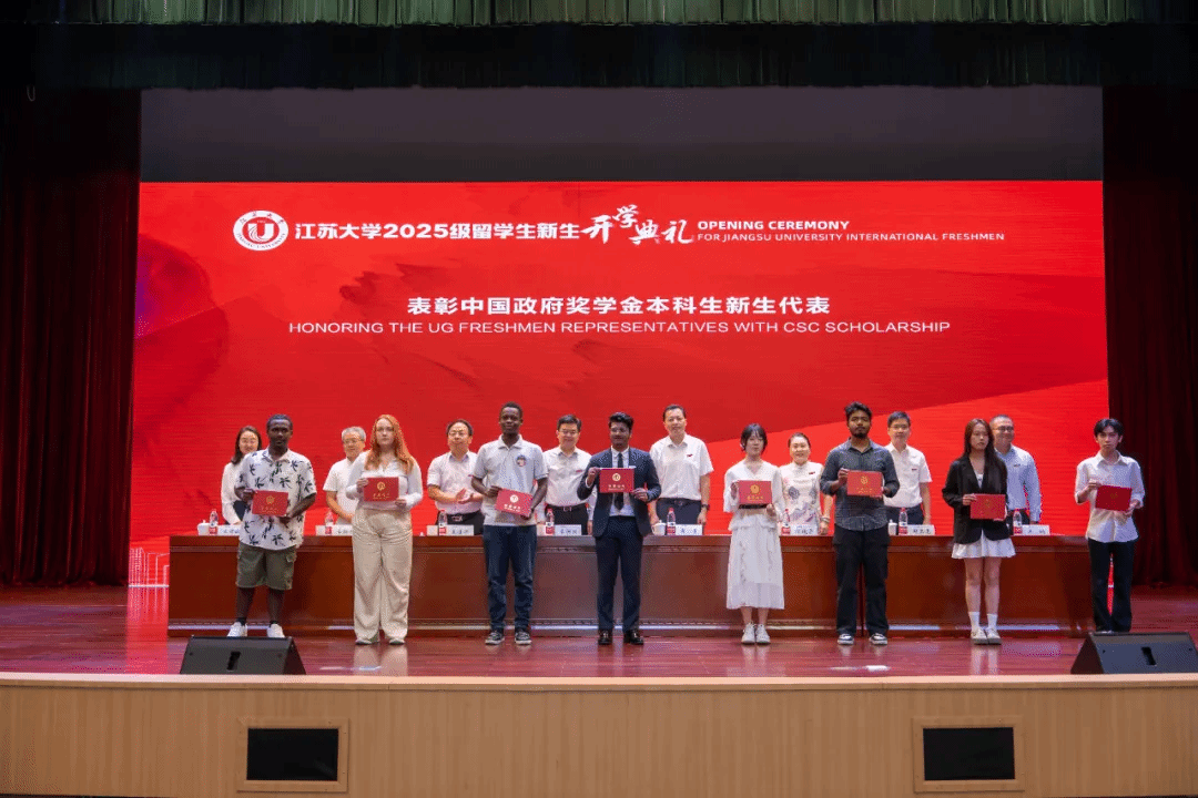 The attending leaders presented certificates to representatives of recipients of the Chinese Government Scholarship, the Jiangsu Provincial Government Scholarship for International Students, the Presidential Scholarship, and Excellent Volunteer Representatives.